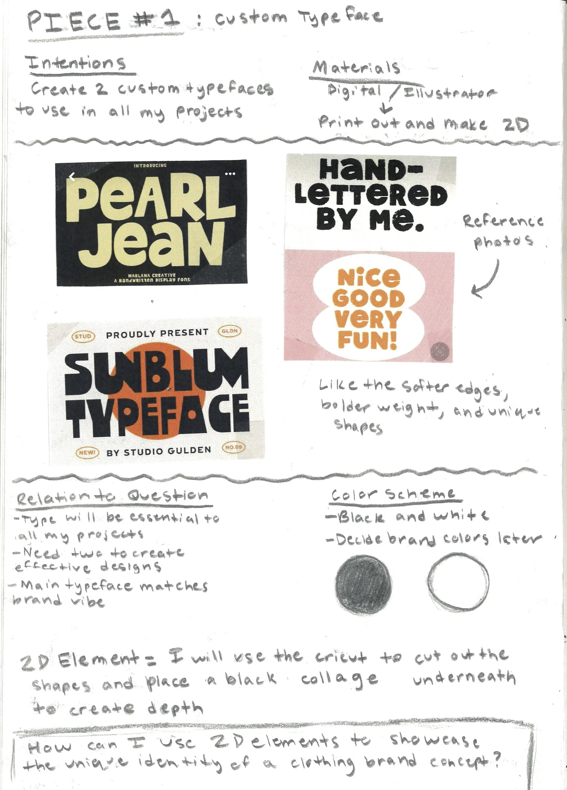 I wanted to create a modern and trendy main font as well as a simpler sans serif font to use for body text or subheadings. I also created a collage to showcase the typefaces in a unique way.