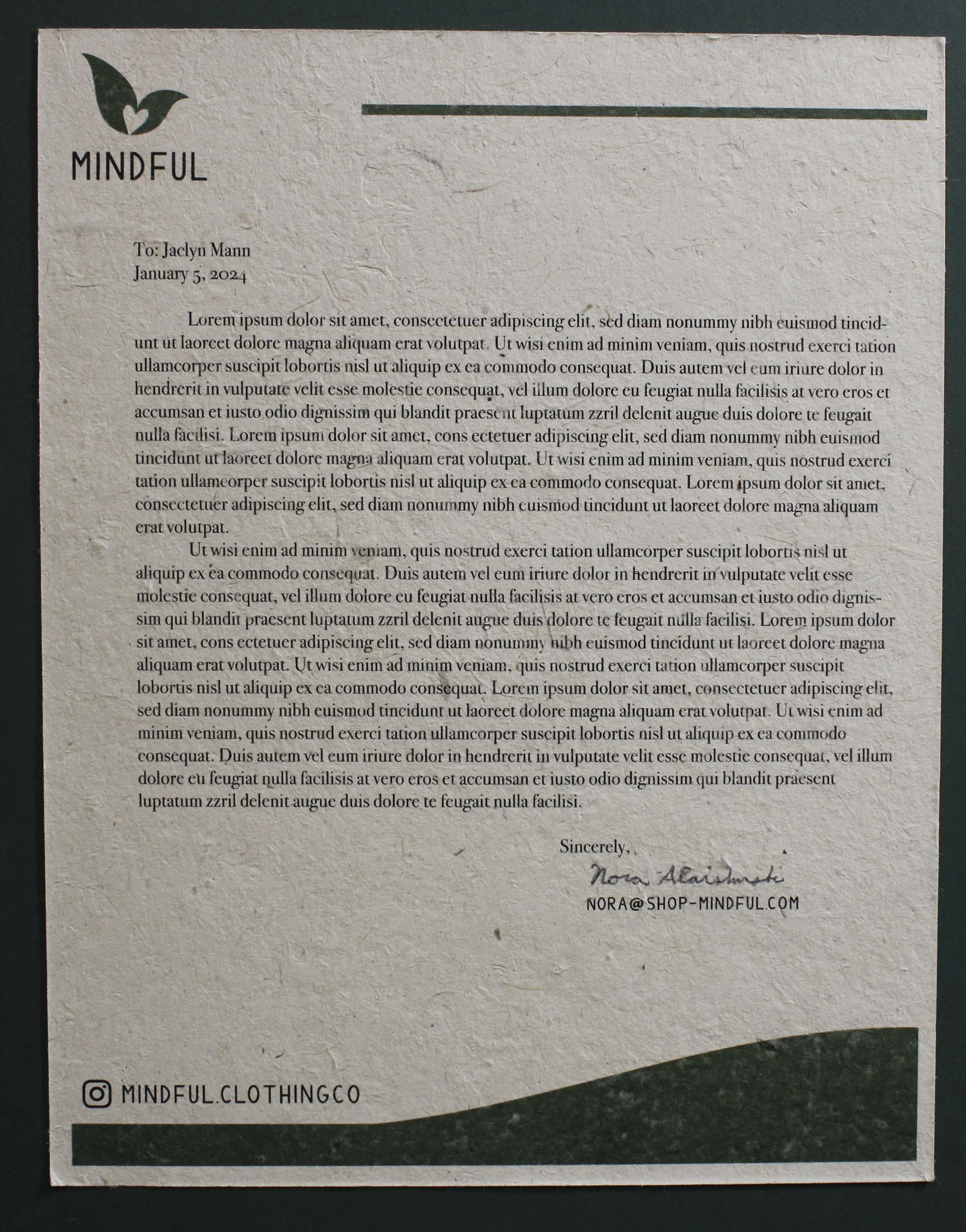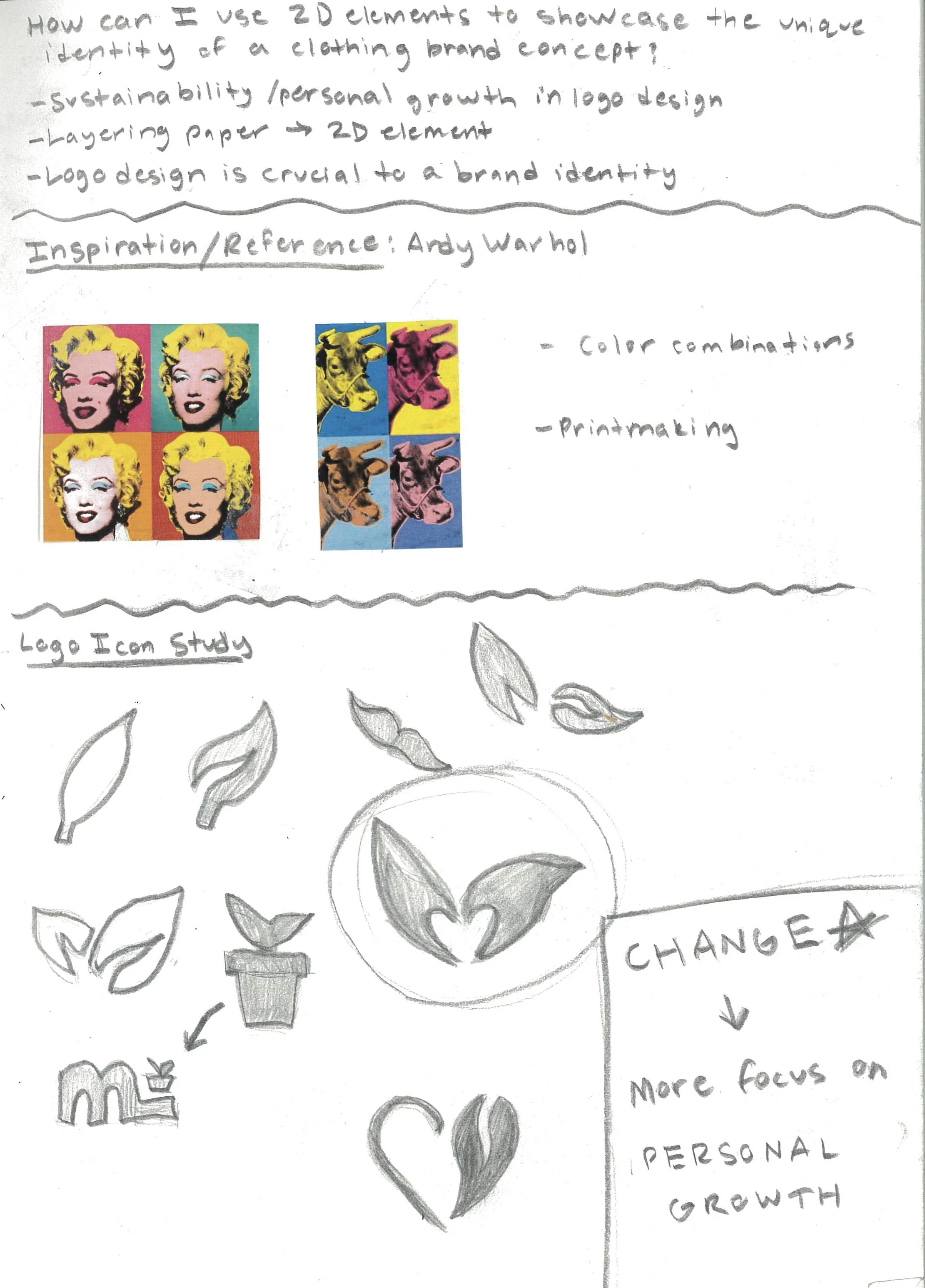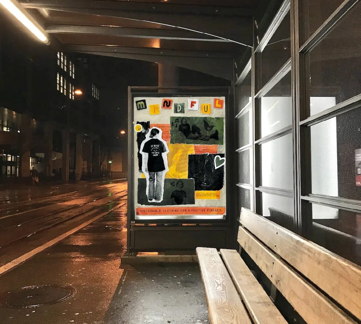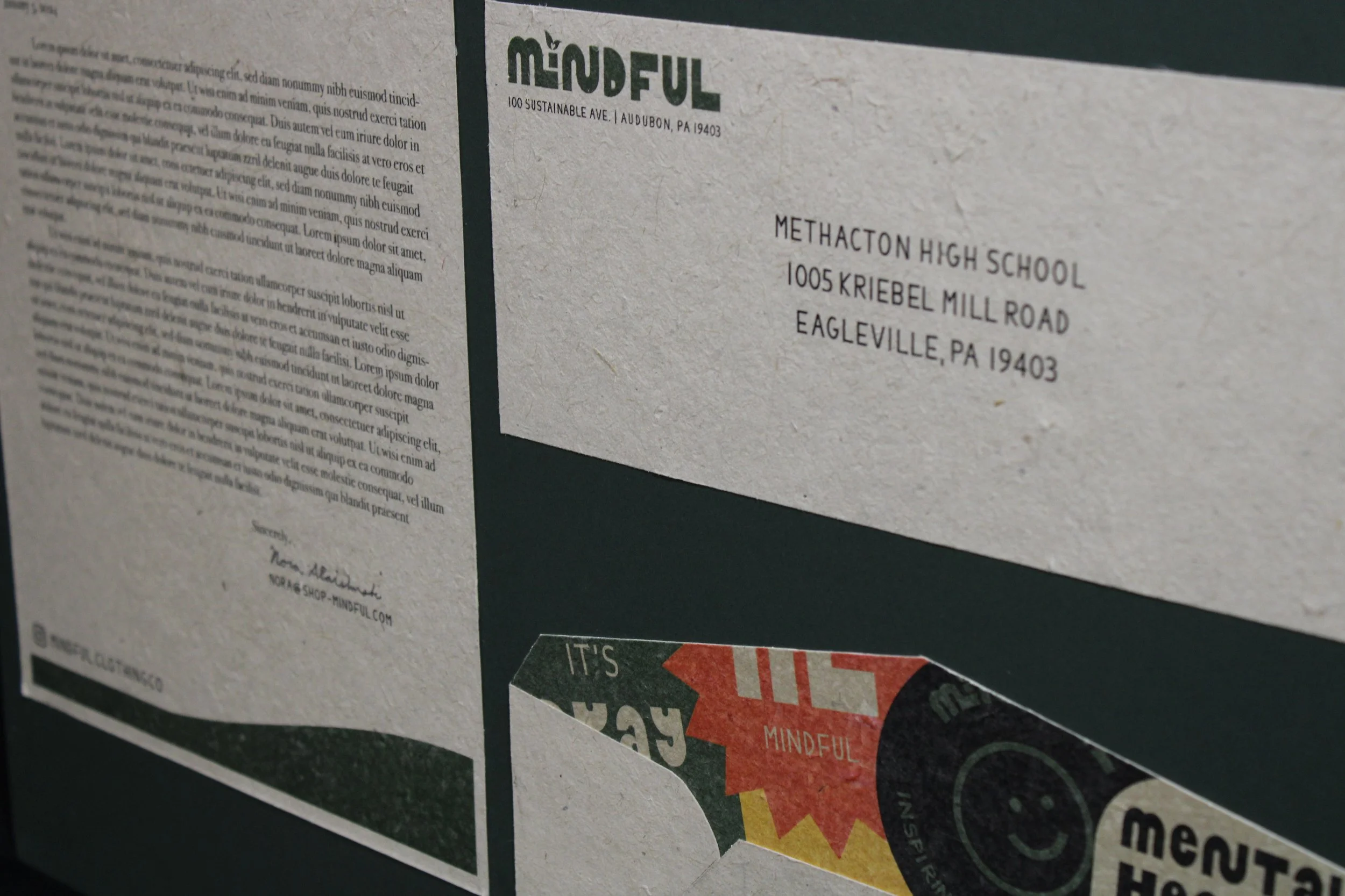 In Advanced Placement (AP) 2D Art and Design, I focused on designing an entire brand identity for Mindful, a sustainable clothing brand that emphasizes being mindful of both your mental health and your impact on the planet by using positive messages and sustainable practices and materials. My goal was to explore all the aspects of creating a clothing brand through mixed media artworks that expand beyond the digital realm.