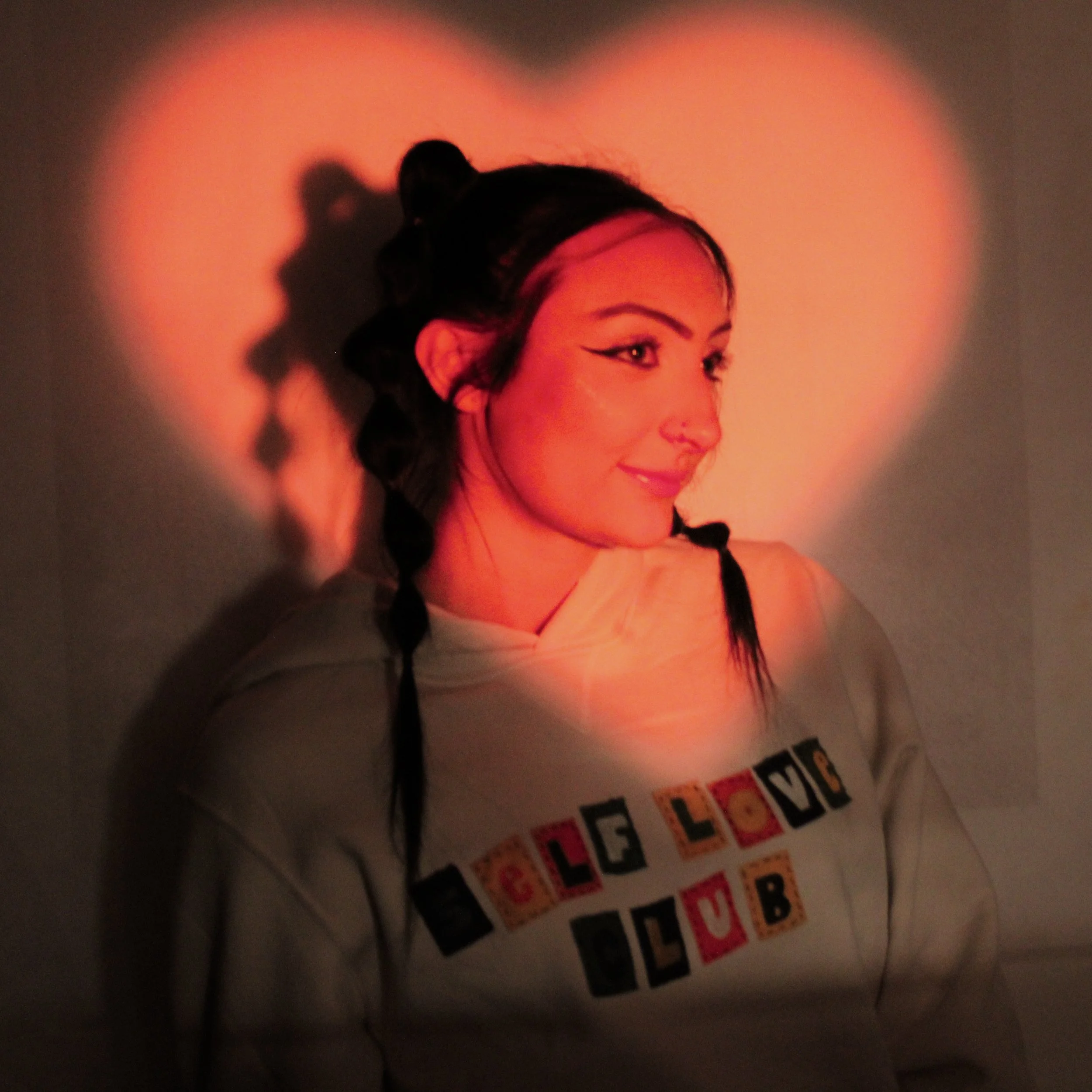 I really wanted to experiment with photography, so I decided to do a projector photoshoot. As shown, these photos would be posted on Instagram to promote the brand. I printed my own photos and digital elements to project onto the models and photographed them in the clothing I made for the brand.