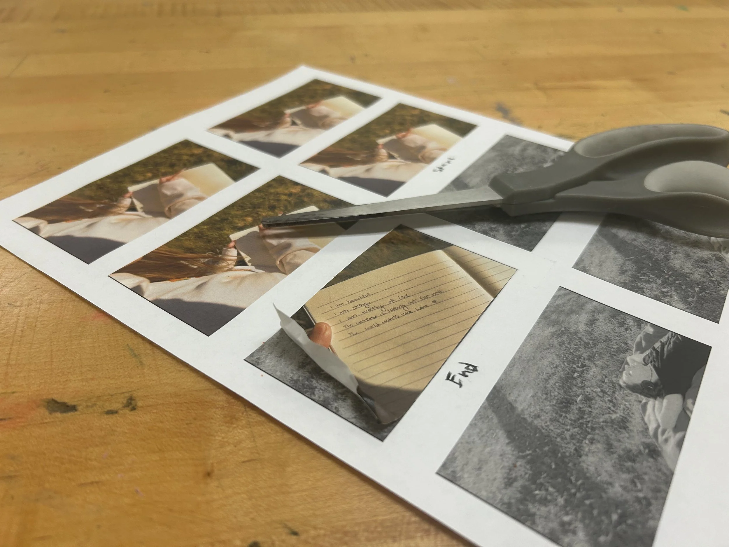 This video would serve as an advertisement or commercial for Mindful. I took video footage of two people wearing the Mindful clothing, printed out the frames, and physically manipulated all 110 frames individually, like drawing on them or scrunching the paper. I then took photos of all the frames and turned them into the final stop motion video.